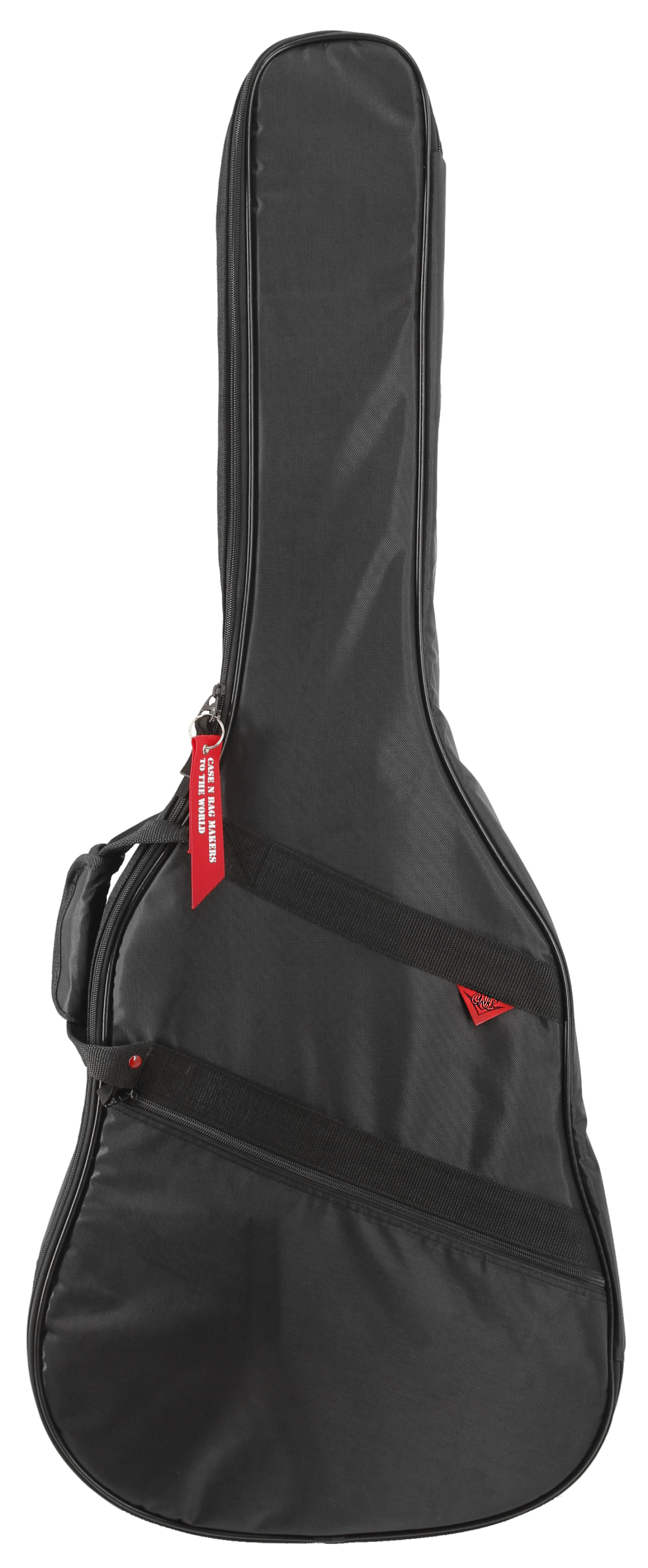 Borsa per chitarra classica, in nylon, imbottita con tracolla. Spessore 10 mm, manici e tasca frontale, Colore nero.