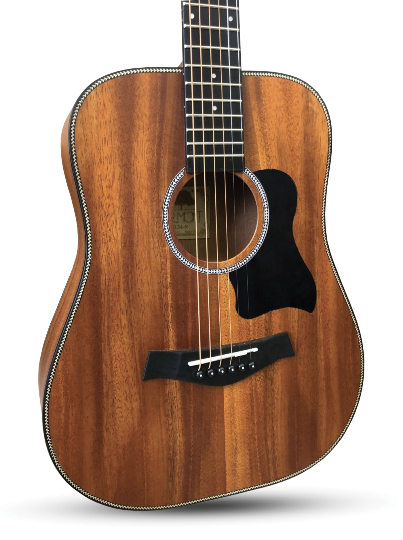 Body: Dreadnought 3/4 (36'') Tavola: Sapele Fasce e fondo: Sapele Tastiera e ponte: Richlite Meccaniche: Round Nickel Die-cast Battipenna applicabile Logo in acero intarsiato Finitura: Open Pore Colore: Natural MS307 (D134-N)