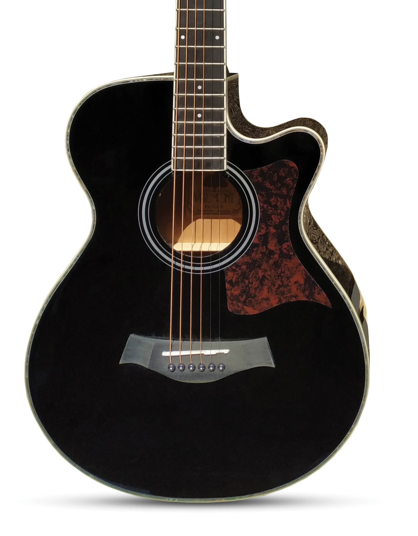 Body: Super Folk 40" Tavola: Abete Fasce e fondo: Sapele Tastiera e ponte: Richlite Meccaniche: Nickel Die-cast EQ: 3 bande con accordatore Battipenna applicabile Paletta matching Finitura: Gloss Colore: Nero MS304 (F100CE-B)